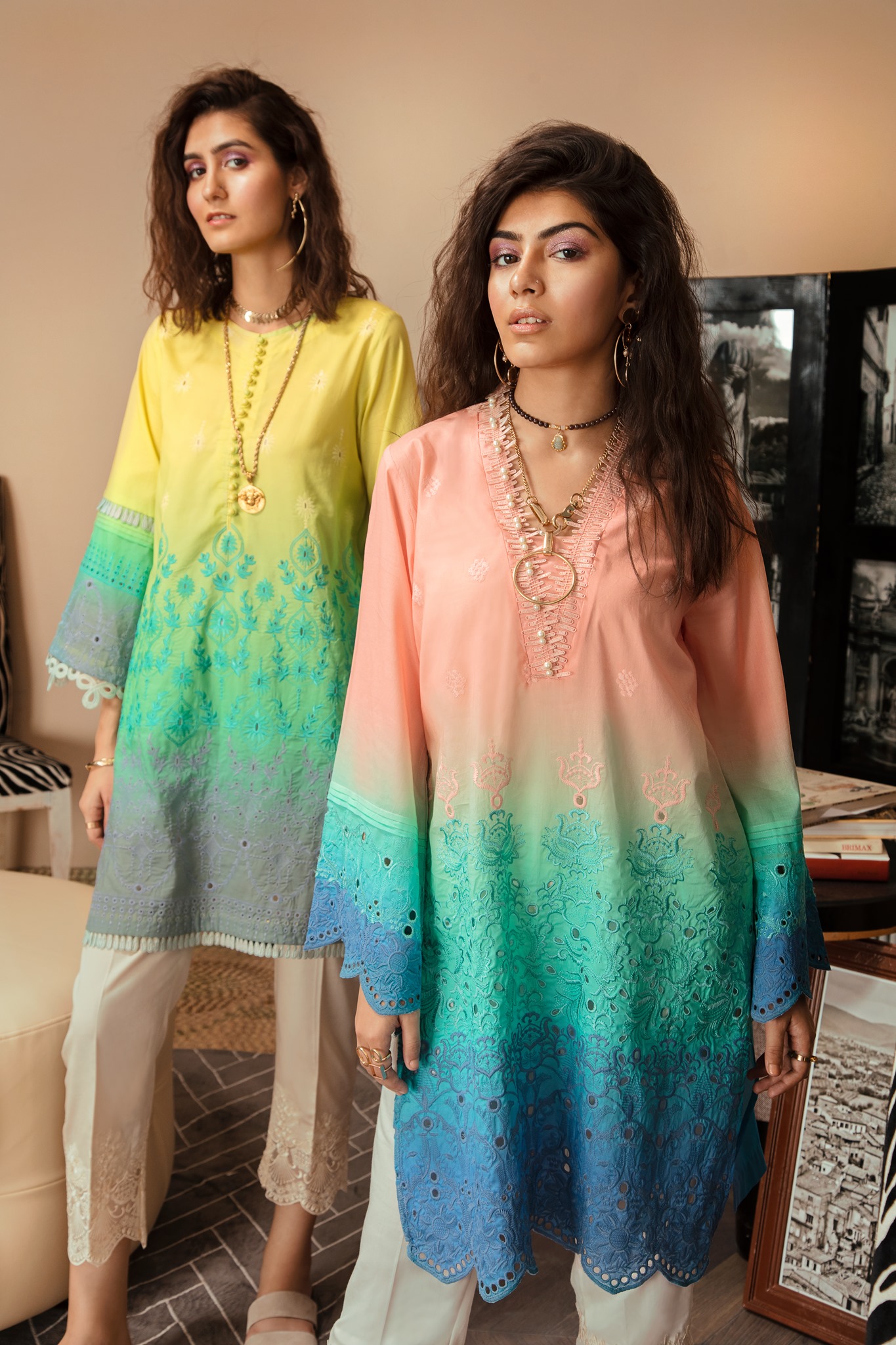 Than it comes to decide DUPATTA; about its fabric & colour on this EID, You have to choose the most recent trend of BANARSI and ORGANZA DUPATTA’s. I prefer you to get the most colourful BANARSI DUPATTA with printed Dress or light weight ORGANZA DUPATTA, which really looks stylish and makes your dress a very fascinating appearance. For more; try to make work on borders of DUPATTA, if u don’t have much time for that, than use LACES on ORGANZA DUPPATA, In addition, if you like SHEESHA EMBROIDERY work or GOTTA work on SHIRT & DUPATTA, than it will surely stands you out in a crowed.