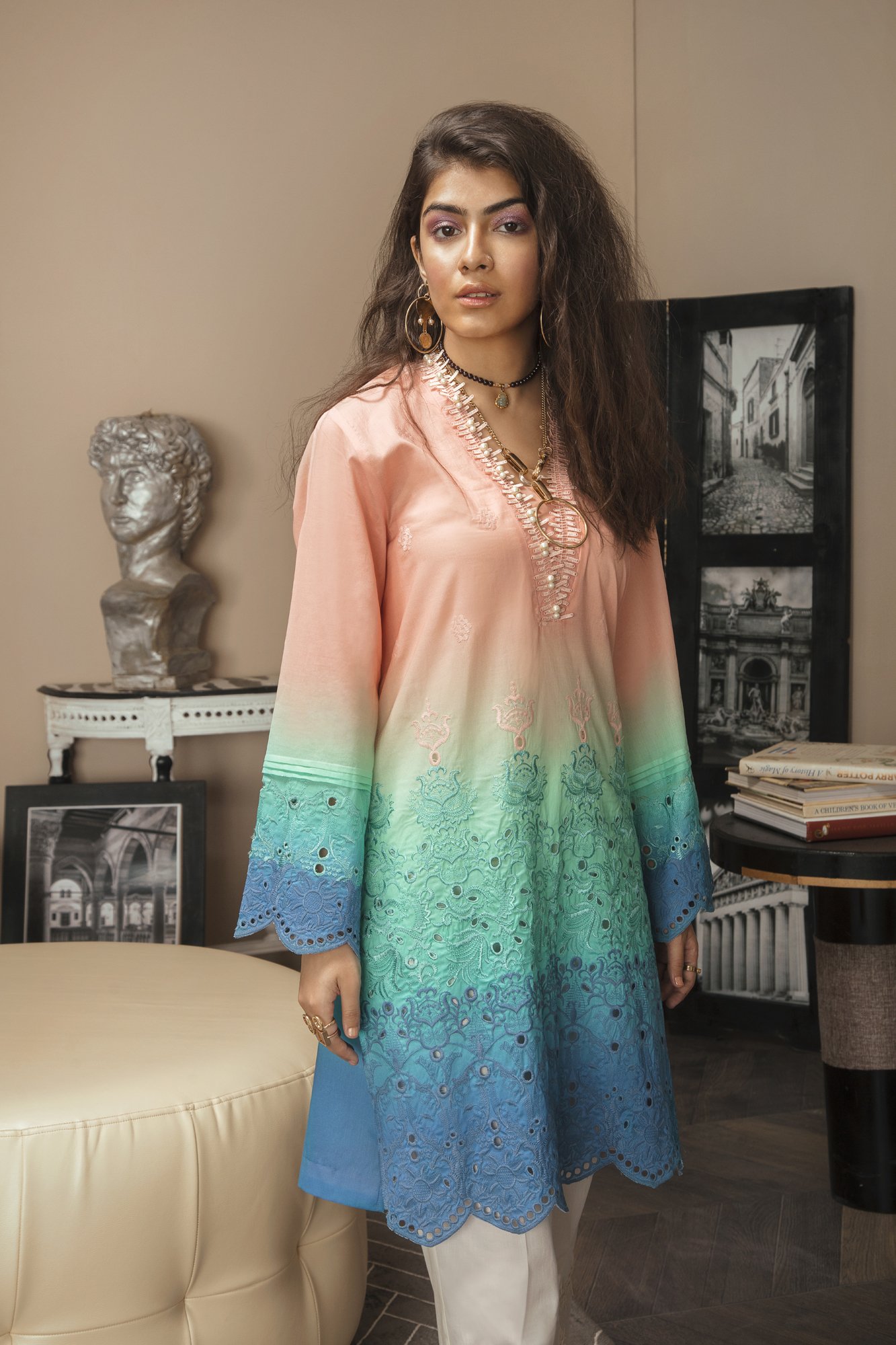 Spotting EID in this summer’s, I will suggest you to use LIGHT COLOURS, like PESTAL colour, OFF-WHITE with GOLD ornaments, these combinations will make you more prominent and attractive on, Though WHITE or OFF WHITE with GOLD ornaments is a new fashion trend, thus you can get yourself in SHARARA or ANARKALI. If you aren’t much fascinated to make your EID appearance in SHARARA or ANARKALI, than you should go for STRAIGHT SHIRT with BELL BOTTOM or STRAIGHT PANT,