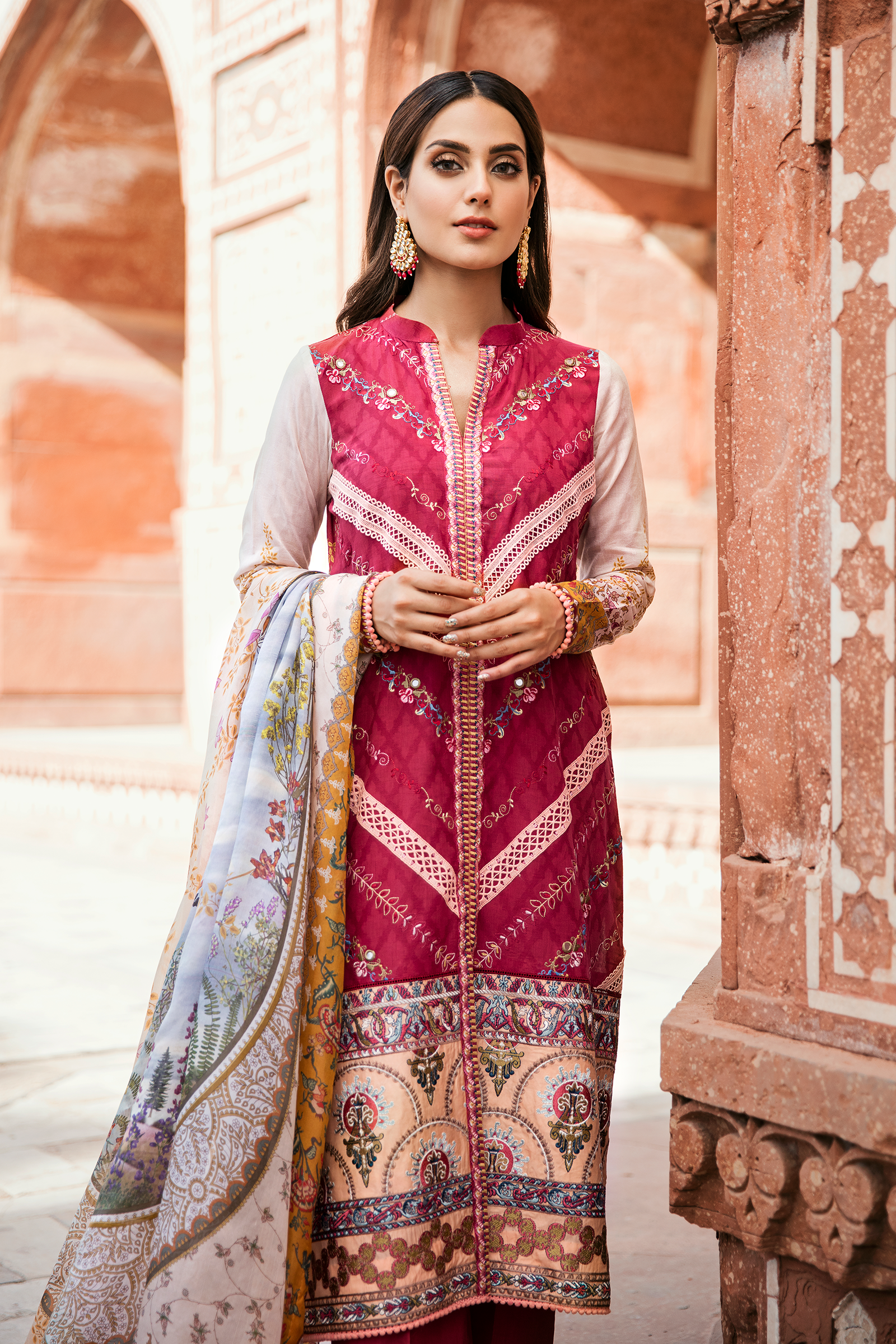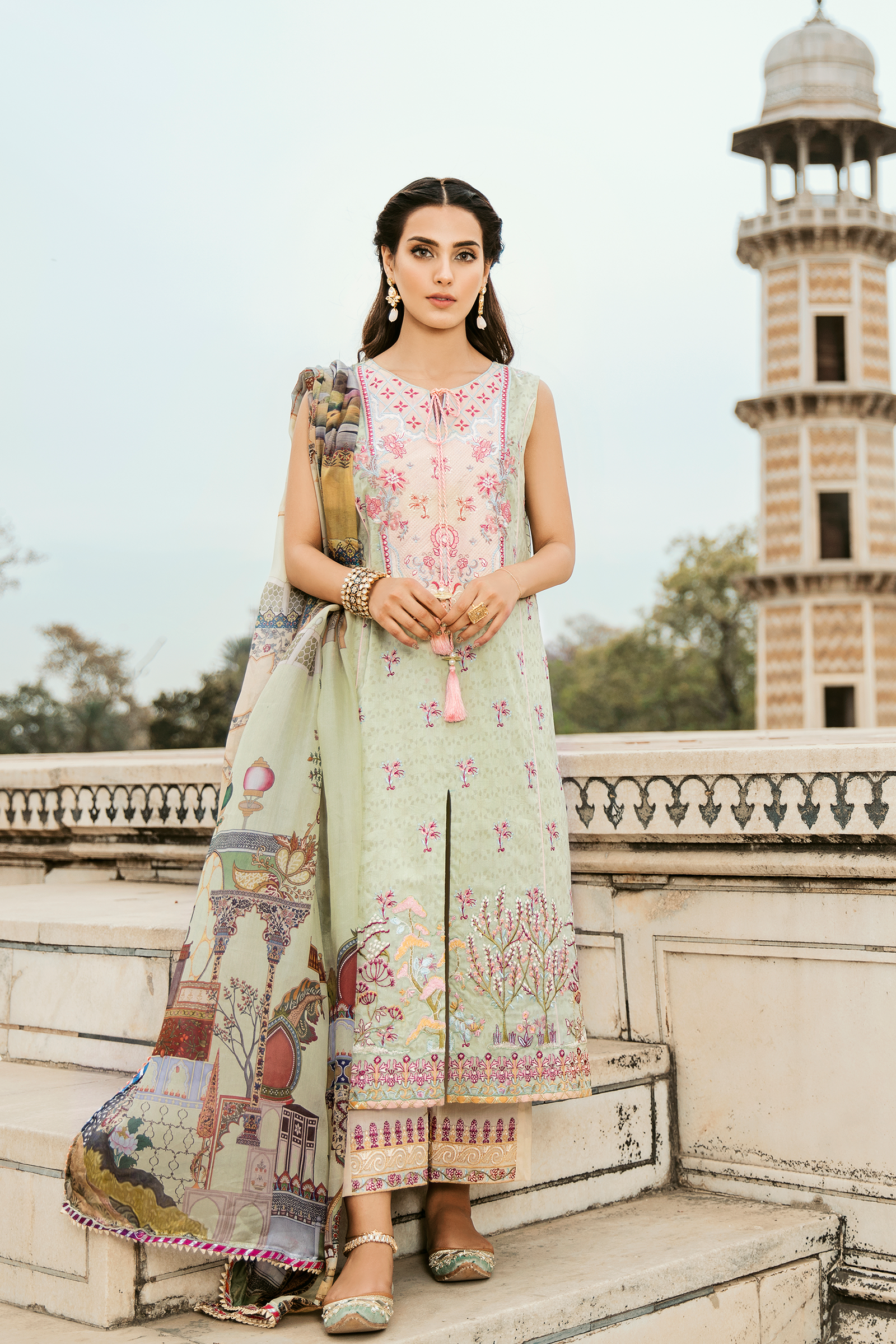 Qalamkar is more focused on modern designs in Dupatta, but they also introduced old-fashioned Shesha embroidery work in their summer collection. Fascinating embroidery Shesha work with beautiful ORGANZA JACQUARD DUPATTA stands you out in a crowd of fashion world; it’s just gorgeous unique designs, which you can easily carry it in any occasion, without spending too much money on hefty traditional dresses.